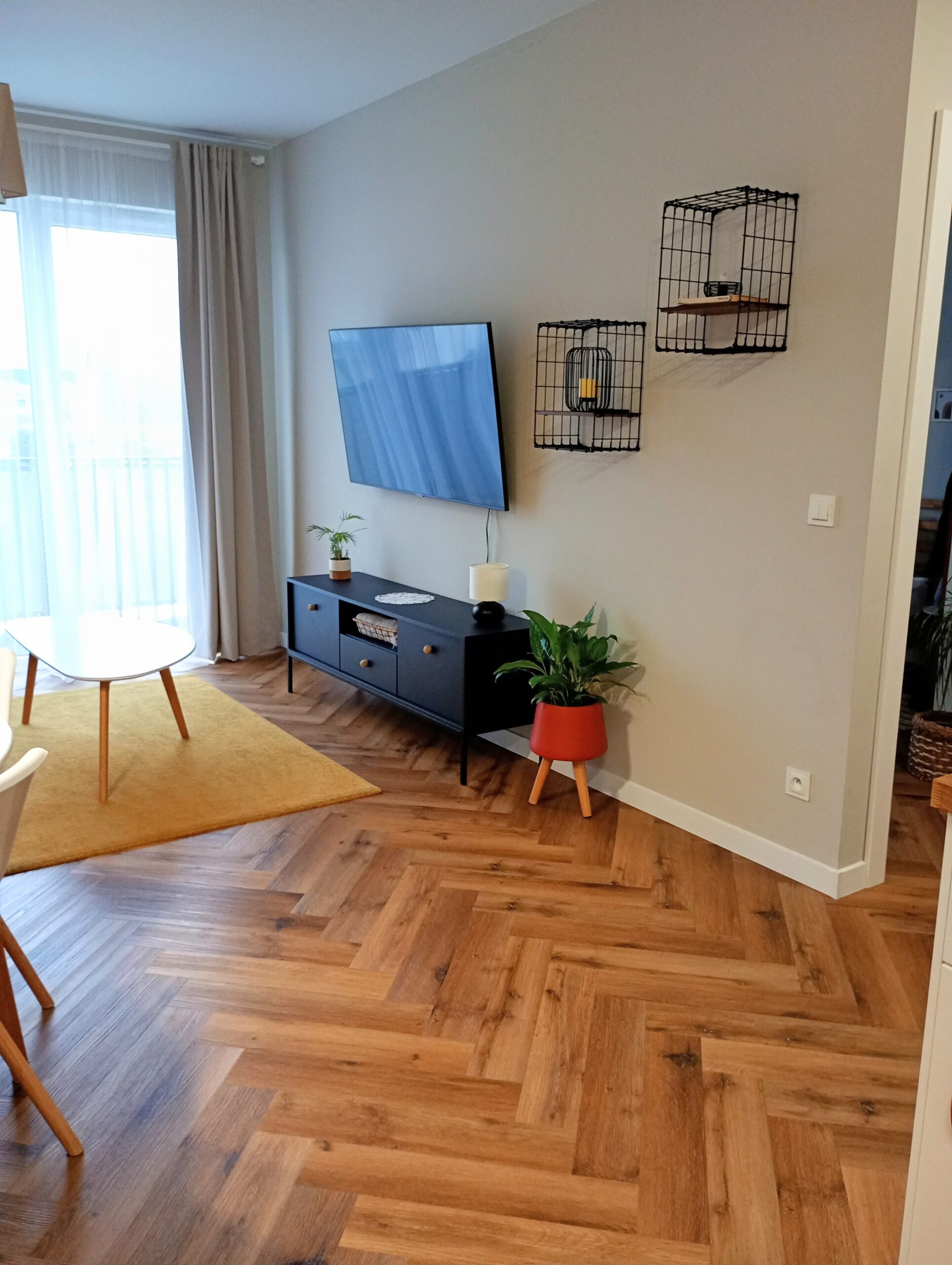 - pomieszczenia: salon z aneksem kuchennym – ekspozycja okien zachód, sypialnia – ekspozycja okien zachód, łazienka z kabiną prysznicową