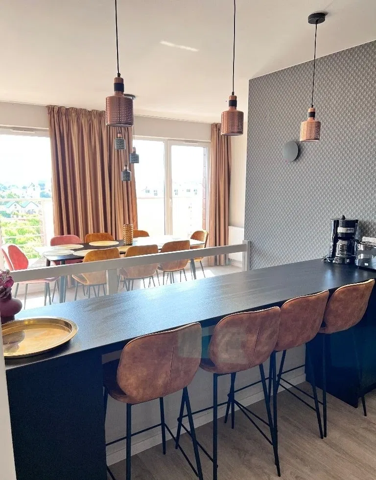 - kuchnia w pełni wyposażona: zastawa stołowa. lodówka, zamrażarka, płyta indukcyjna, zmywarka, kuchenka mikrofalowa