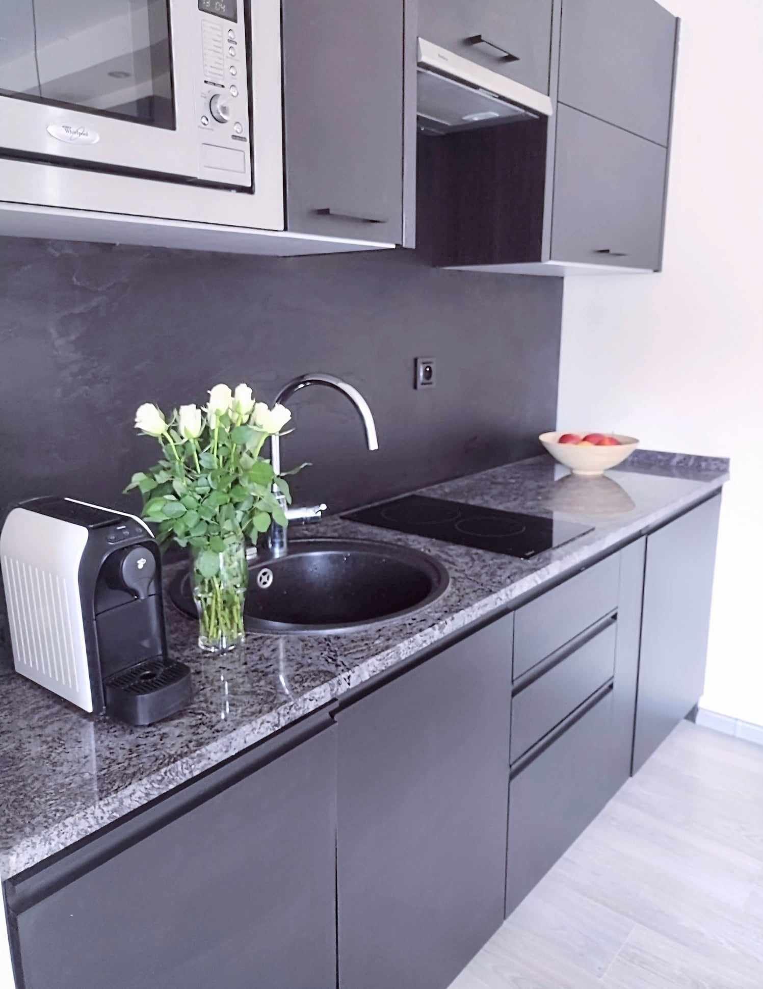 - ekspres do kawy kapsułkowy, czajnik, płyta, mikrofalówka, lodówka, pralka