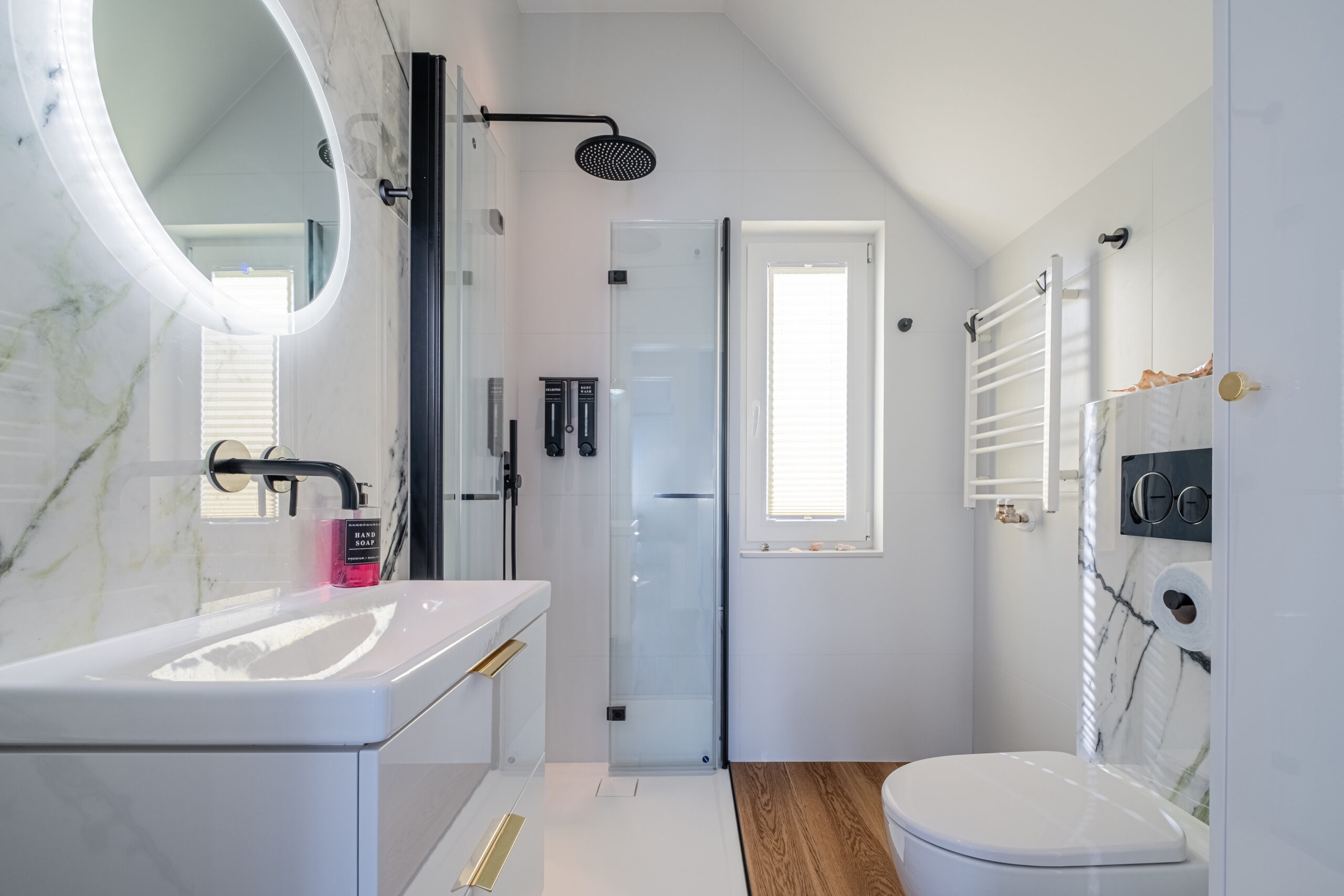 - łazienka z prysznicem