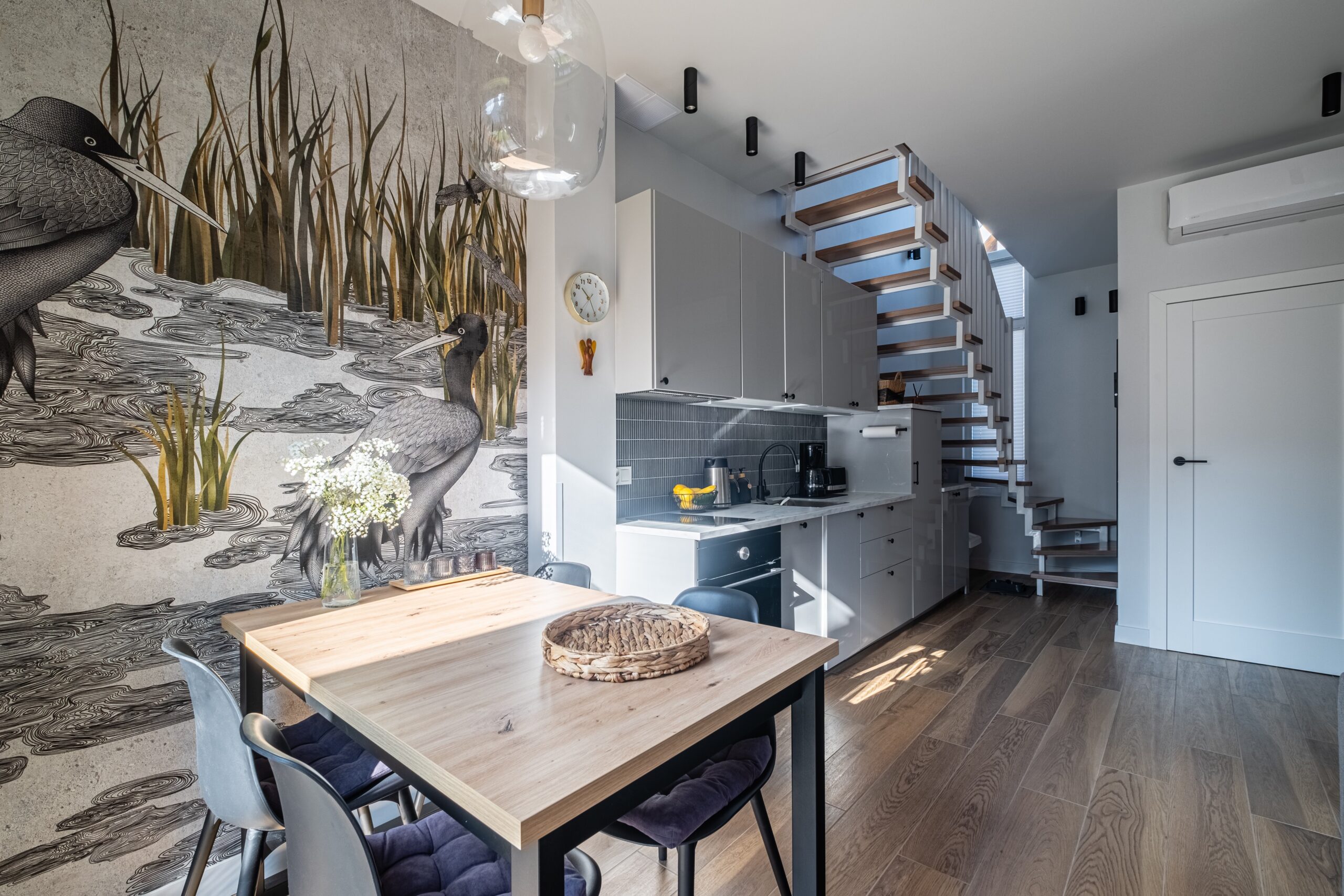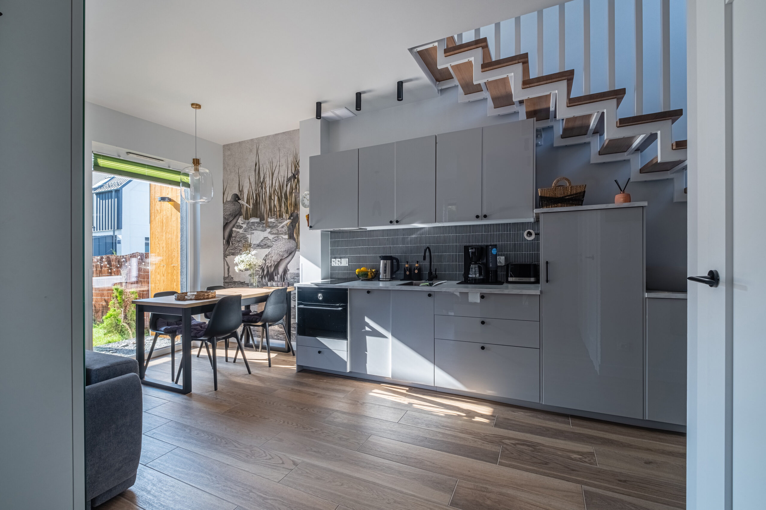 - rozkładana kanapa 140×200 cm, pralka, lodówka, piekarnik, sprzęt i akcesoria kuchenne