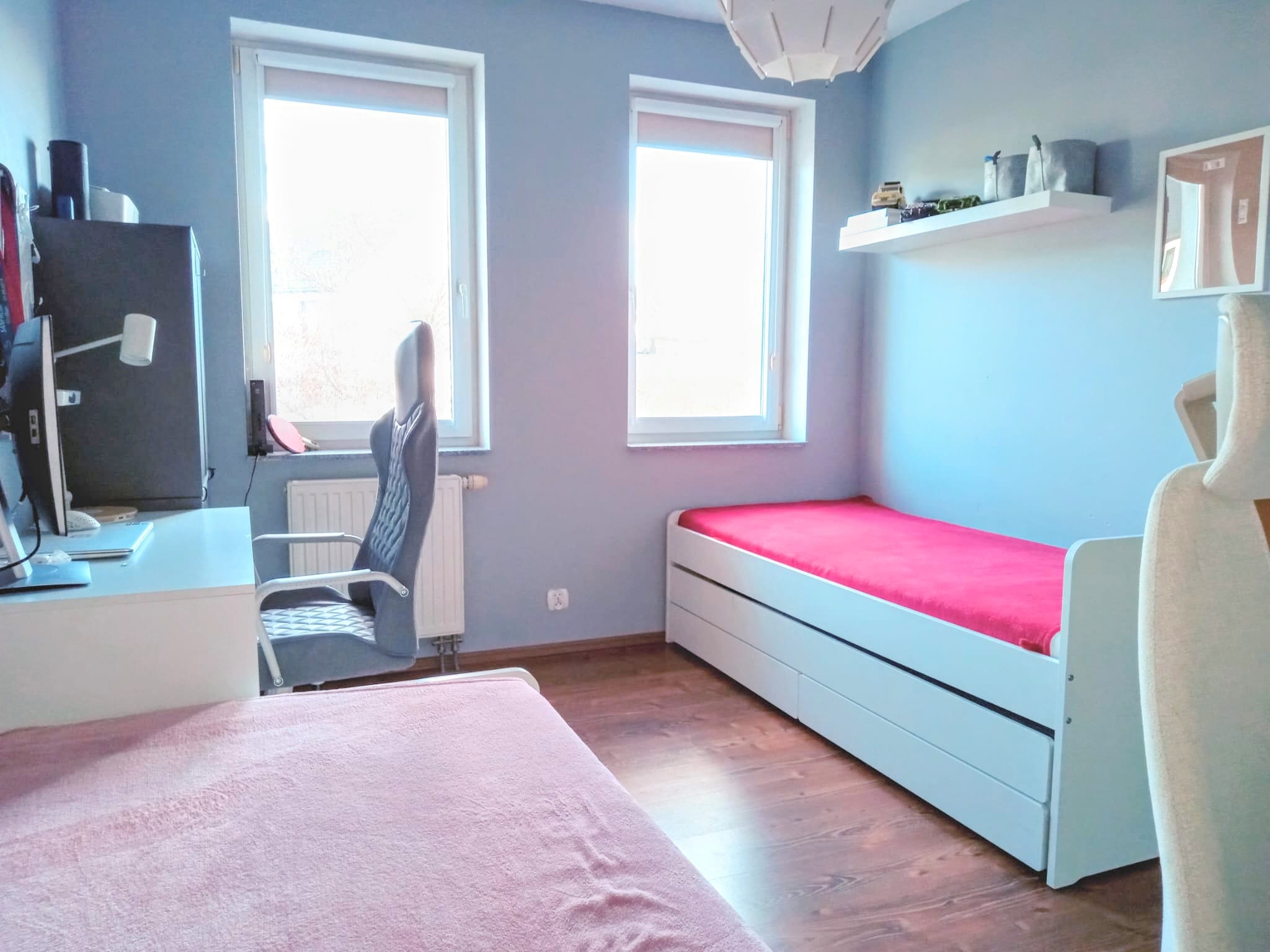 Mieszkanie bardzo atrakcyjne, niskie koszty utrzymania, jasne (okna pd-wsch), ciepłe, mieszczące się na I PIĘTRZE dodatkowo: miejsce na zamkniętym parkingu osiedlowym, dostęp do ogrodzonego placu zabaw, monitoring. Niewątpliwym atutem mieszkania jest jego lokalizacja. Bardzo dobrze się tu mieszka, cisza i spokój, bardzo komfortowa odległość między blokami z balkonu widok na pas zieleni, za którym znajduje się osiedle domów jednorodzinnych: w pobliżu liczne sklepy, szkoły, przedszkole, przystanki autobusowe, gabinety lekarskie, basen.